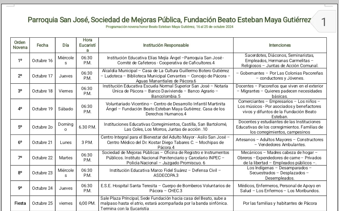La Fundación "Beato Esteban Maya Gutiérrez" - FUBEMAG, tiene fines religiosos, culturales, turísticos y de ayuda con dignidad, procura siempre el bien común y el interés social, para el mejoramiento de la calidad de vida de los habitantes más necesitados del municipio de Pácora, Caldas, Colombia.